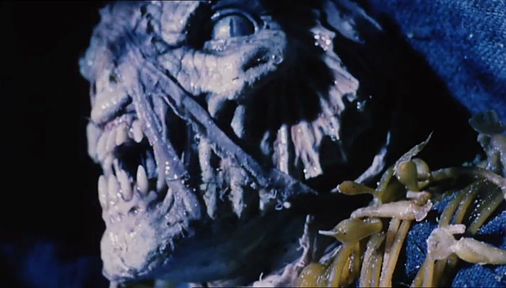 These adaptations are as loose as they come in terms of both their content and their approach: They generally take nothing more than a broad plot point (a man’s ancestral home has a dark secret, a mad scientist has to refrigerate himself to stay alive, etc.) from their source material, and the garish explicitness of the visuals is more reminiscent of old EC comics like Tales from the Crypt than of Lovecraft’s hallucinatory primness. This is very much a B-movie, with un-subtle writing and un-subtle acting and one of the most gratuitously unnecessary boob shots in the history of non-pornographic cinema.